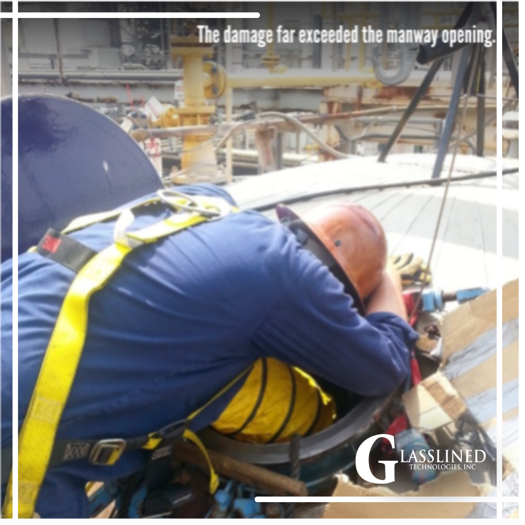 In another high-stakes situation, GTI was called in to evaluate damage to the top head of a one-of-a-kind 30,000-gallon vertical storage tank. The extent of the damage went far beyond the manway opening, and with no spare tank on site—and an estimated 18-month delivery time for a replacement vessel—time was of the essence.
